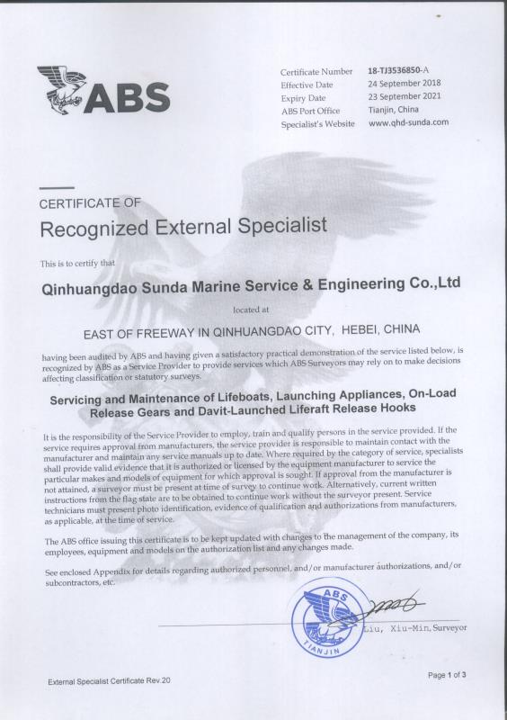 秦皇島順達船務有限公司位于美麗的海濱城市、中國北方著名的能源輸出大港--秦皇島。公司從事于船舶修理、物料供應、水下檢測、船體測厚、消防救生設備及救生艇檢驗、電氣自動化修理等服務。 公司自1997年成立至今,先后為國內外船東修理、檢驗各類船舶萬余艘,積累了豐富的施工經驗。公司現有場地100余畝,員工30余人,以及工程用車若干臺。我們公司一直本著嚴以律己、真誠待人、精益求精、信譽至上的經營理念,以優質的服務、專業的施工、合理的收費,得到了國內外船東的廣泛認可,贏得了良好的口碑和信譽。 公司已取得了中國船級社(CCS)、美國船級社(ABS)、日本船級社(NK)、德國船級社(DNV GL)等各個船級社的消防救生和救生艇檢驗資質, ...